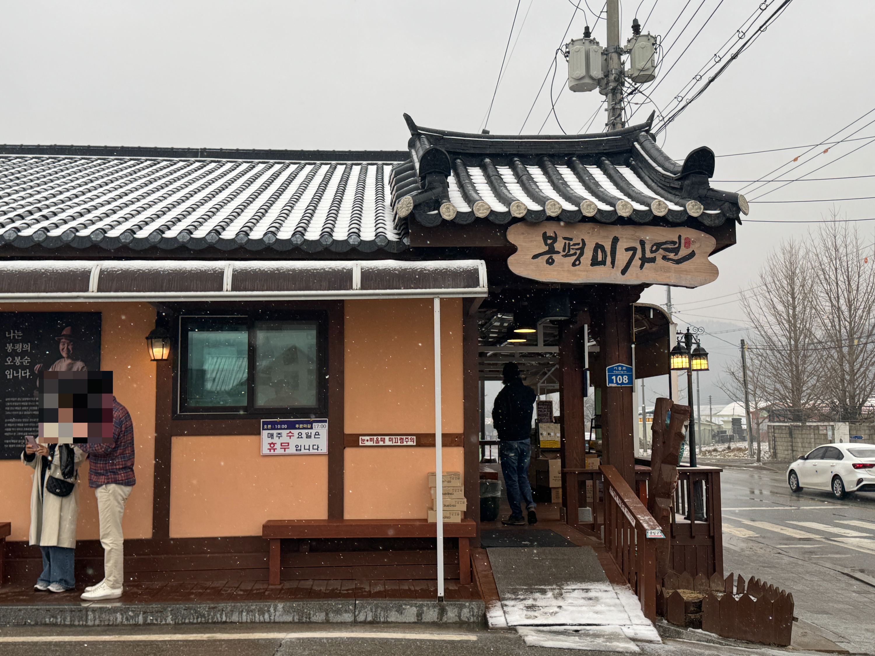 강릉 여행 중 눈이 오락가락하던 지난 주말, 점심 식사를 위해 들린 곳은 평창군 봉평면에 위치한 봉평미가연이다. 100% 이대팔 메밀을 사용하는 집으로, 건강한 식재료와 정갈한 분위기 덕분에 평일·주말 모두 인기 있는 식당이다.