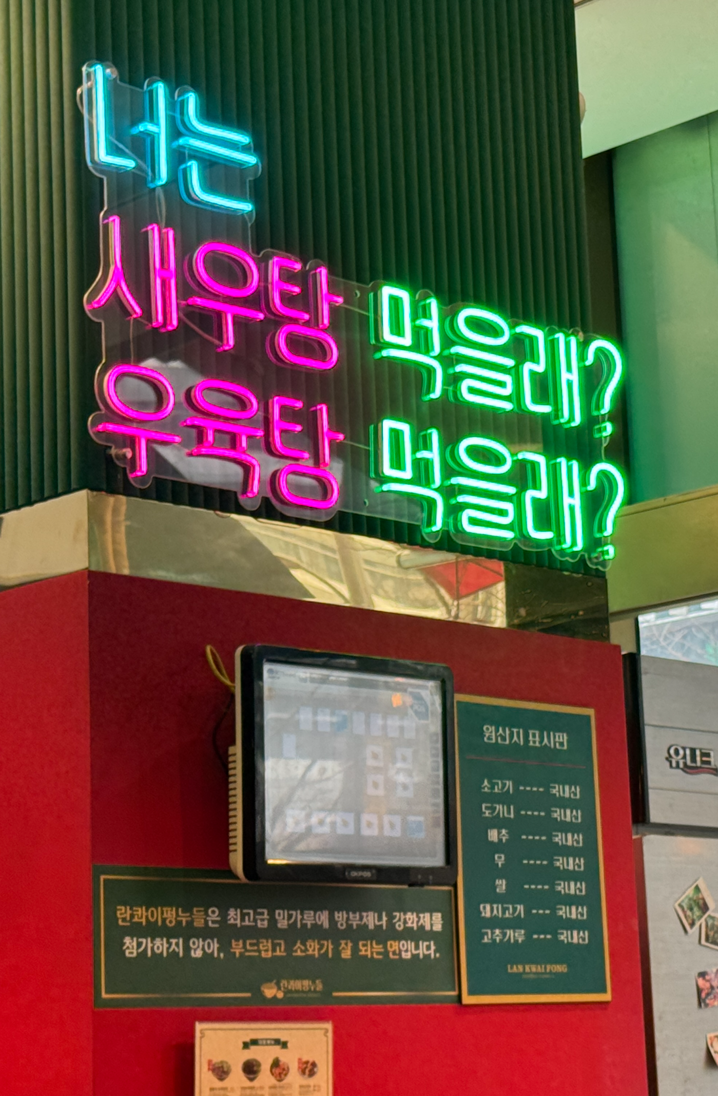 "너는 새우탕 먹을래? 우육탕 먹을래?"라는 귀여운 네온 문구까지 센스 만점!